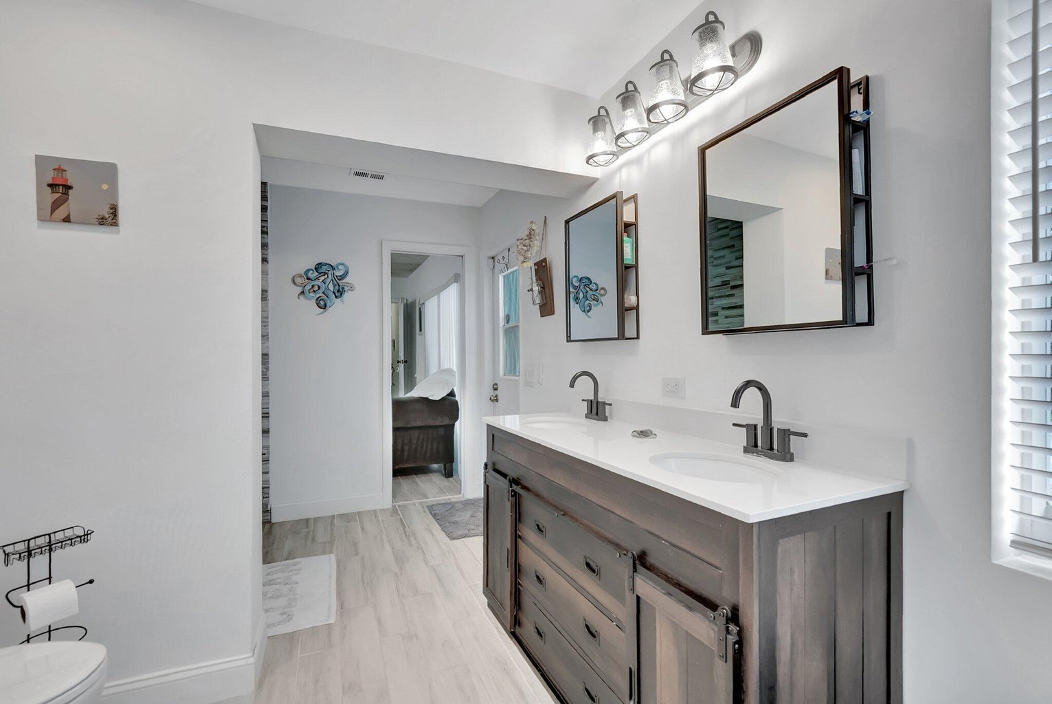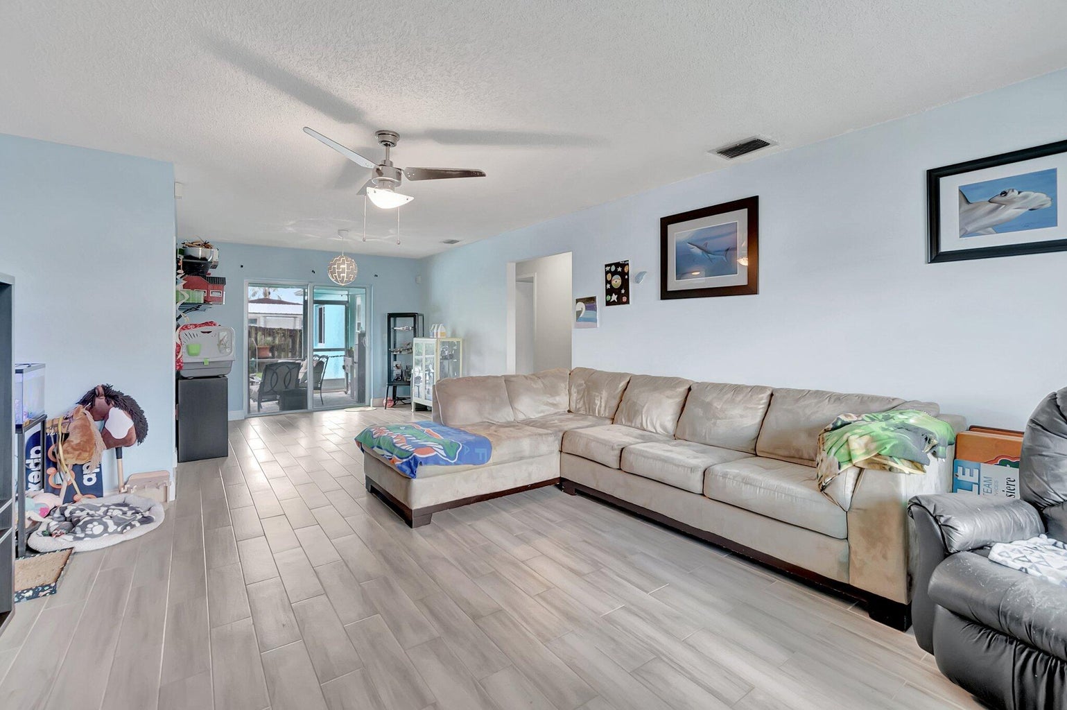 This beautiful home features 3-bedrooms, 2-baths, an updated kitchen with white shakers and quartz counter tops. Gorgeous primary bathroom with spacious double sinks shower and a tub. Large walk-in closet, recently updated. Enjoy the fenced-in yard with a pool and small screened enclosure, perfect for outdoor relaxation. This corner lot home boasts impact windows for added efficiency. Located in a family-friendly community with excellent schools and a low HOA, this home is a must-see! Schedule your showing today!